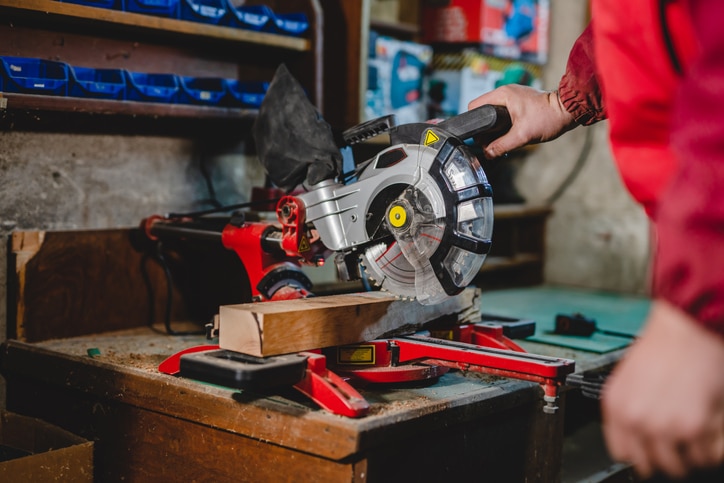 Un ouvrier nettoyant la chaine d'une tronçonneuse